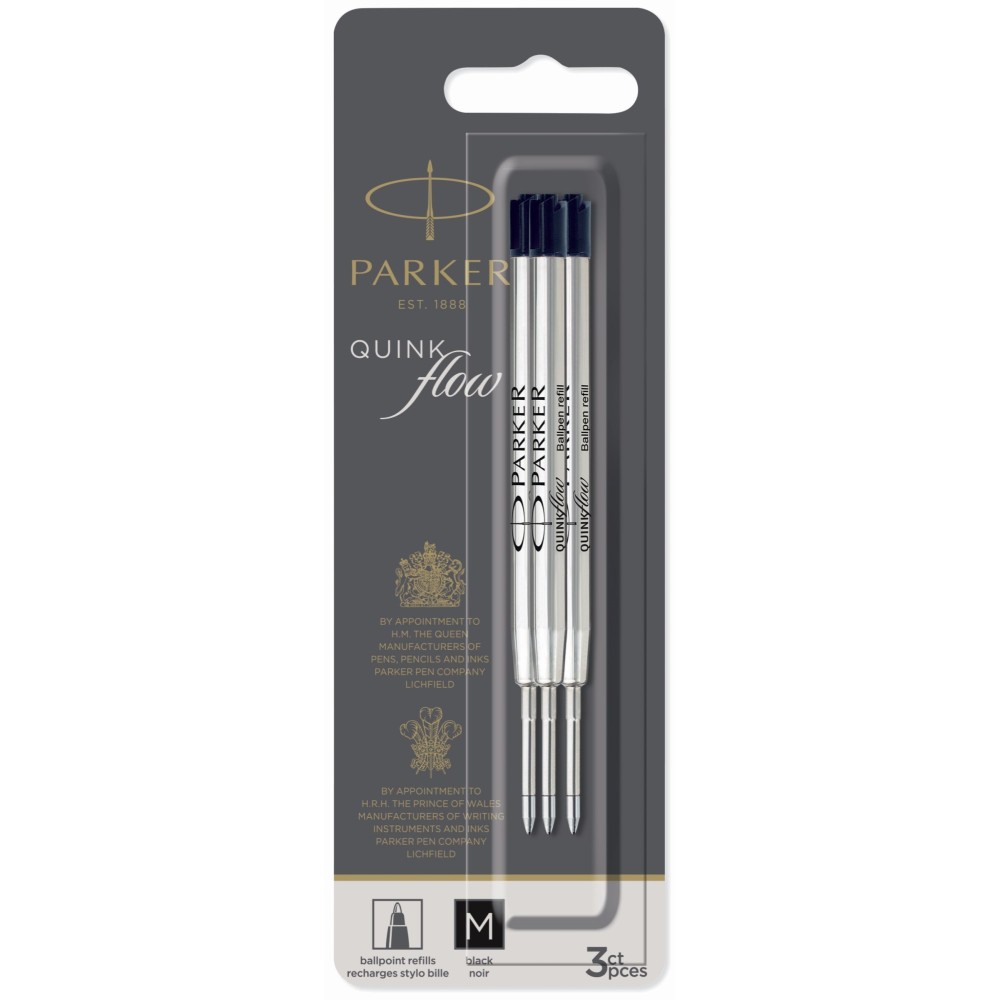 Черный стержень для шариковых ручек Parker QuinkFlow Z08 (M - 1мм), в блистере (3шт)